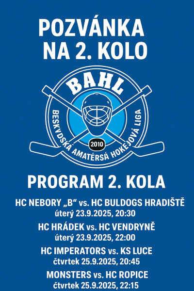 Druhým kolem pokračuje Beskydská amatérská hokejová liga a fanoušci se mají na co těšit! Čtyři duely nabídnou napětí, rivalitu i šanci na překvapení.